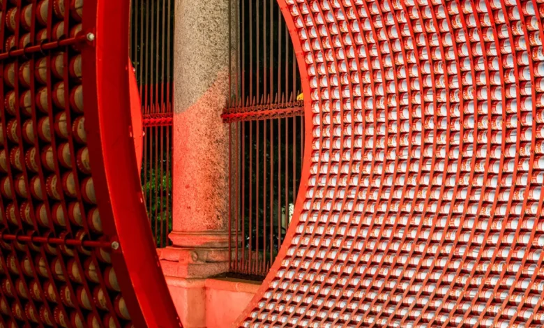 - The Assembly Phase: Over several days leading up to Milan Design Week, the steel substructure was erected under the university portico. The 20,000 cans were then manually slotted into the frame, creating the dense, opaque red walls of the tunnel.