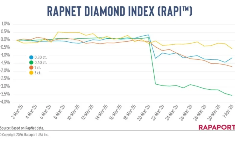 - March 31: RAPI data confirms a 1.7% monthly decline for 1-carat benchmark stones.