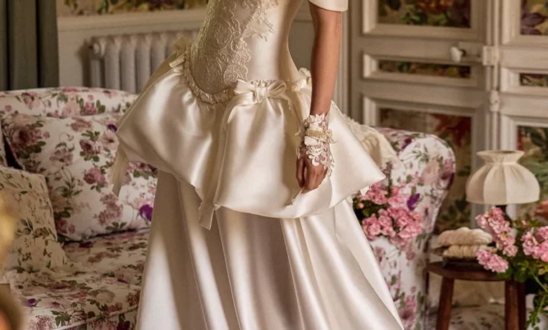 Another significant design choice is the use of the "bubble hem" on short wedding dresses. This silhouette, often associated with high-fashion editorial looks, provides a playful yet structured option for the modern bride. When paired with an off-shoulder lace corset bodice and a basque waist, the bubble hem short dress represents the collection’s most youthful and daring iteration.
