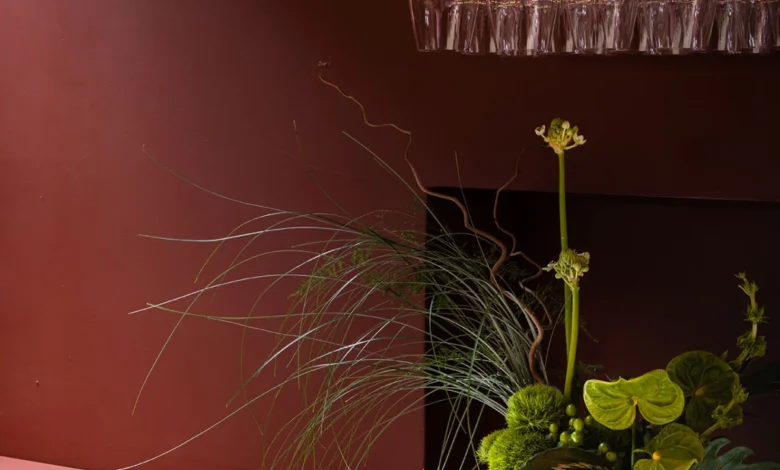 The centerpiece of the main dining hall is a singular, determined skylight that dominates the ceiling. This architectural choice serves as the primary source of natural illumination, bathing the interior in a concentrated beam of light that shifts throughout the day, creating a sundial-like effect on the floor. To complement this natural light, Cornila has integrated soft, delicate orbs across the surrounding walls. These fixtures offer a warm, endearing glow that offsets the intensity of the room’s primary color: a deep, saturated burgundy.
