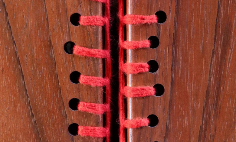The structural rigidity of the Jatobá provides a stark, intentional contrast to the secondary material: bright red yarn. This yarn is threaded through the wood in a series of intricate, geometric patterns that recall the traditional embroidery Treivas witnessed during her childhood. By boring holes directly into the hardwood to facilitate the passage of thread, the designers have created a hybrid medium that requires the precision of woodworking and the fluidity of textile arts.